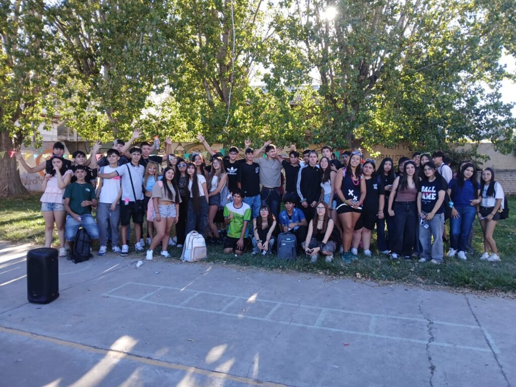 La jornada comenzó con un ingreso distinto: las y los estudiantes pudieron entrar a la escuela con alegría, serpentinas y espuma, realizando una recorrida por los pasillos y espacios del establecimiento para compartir con toda la comunidad la emoción de iniciar su último año en la secundaria.