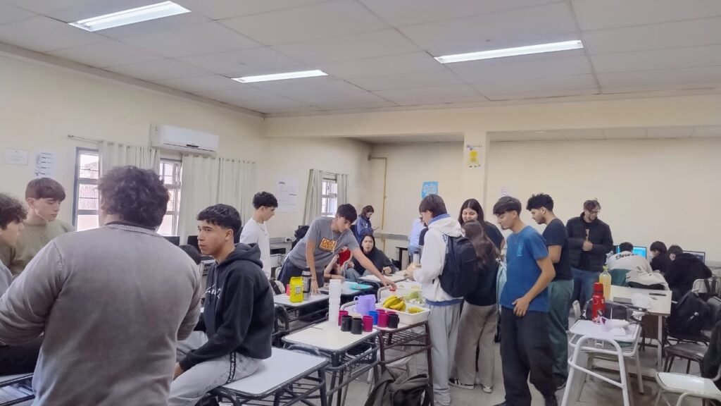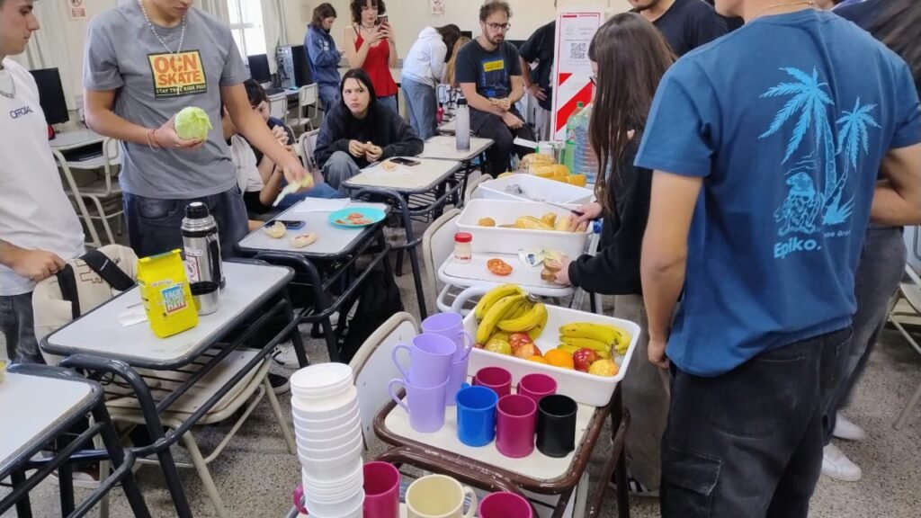 Antes de comenzar con la competencia, los estudiantes compartieron un almuerzo sencillo pero muy disfrutado: sándwiches, bebidas y frutas, que sirvieron para distenderse y preparar el clima de compañerismo que caracterizó al encuentro.