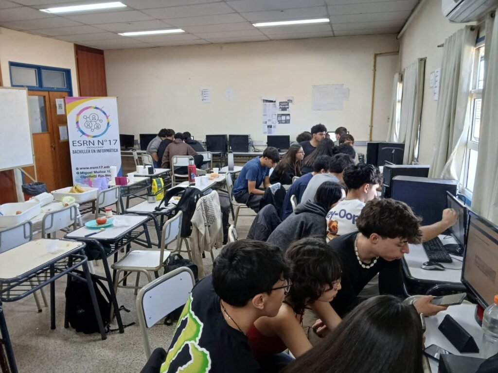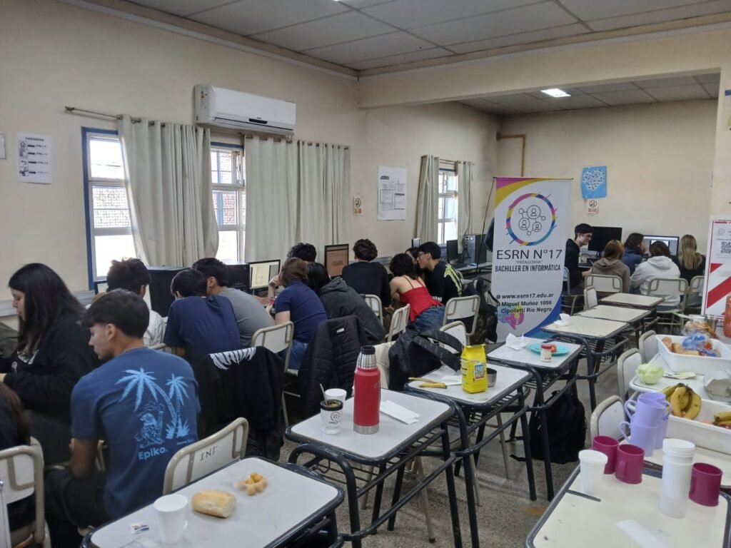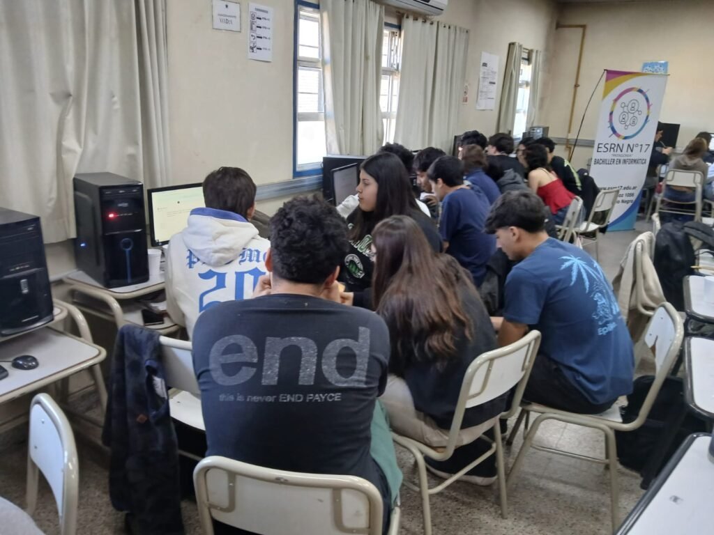 En total, participaron 31 estudiantes: 14 del CET 30 y 17 de la ESRN 17. Los chicos y chicas del CET 30 se trasladaron hasta nuestra escuela acompañados por los profesores Federico Ceccotti y Jorge Morales, quienes junto con el área de Informática de la ESRN 17 organizaron la actividad.