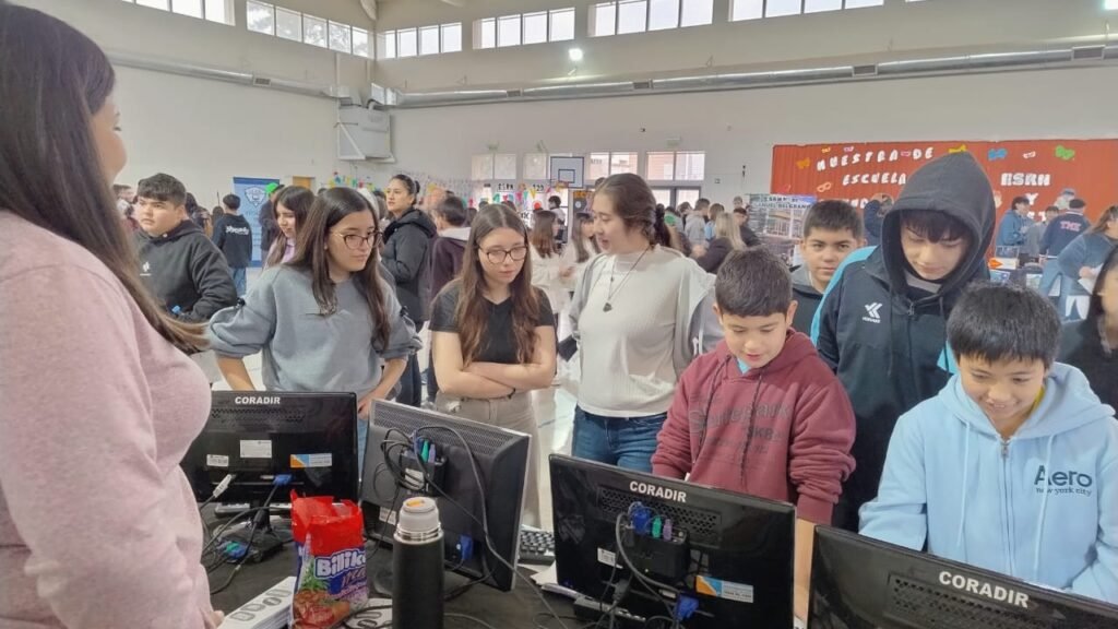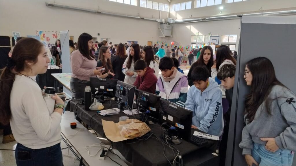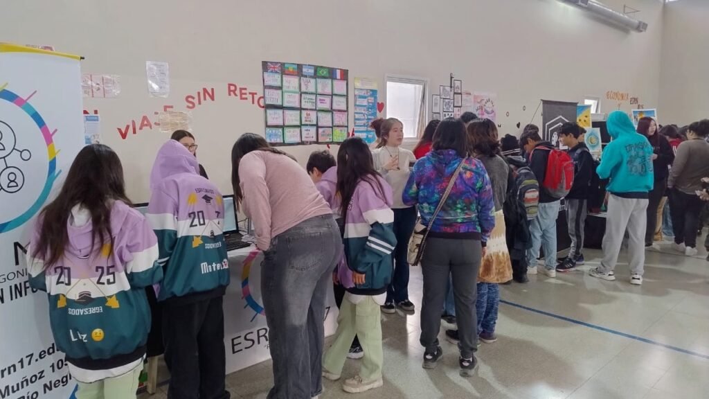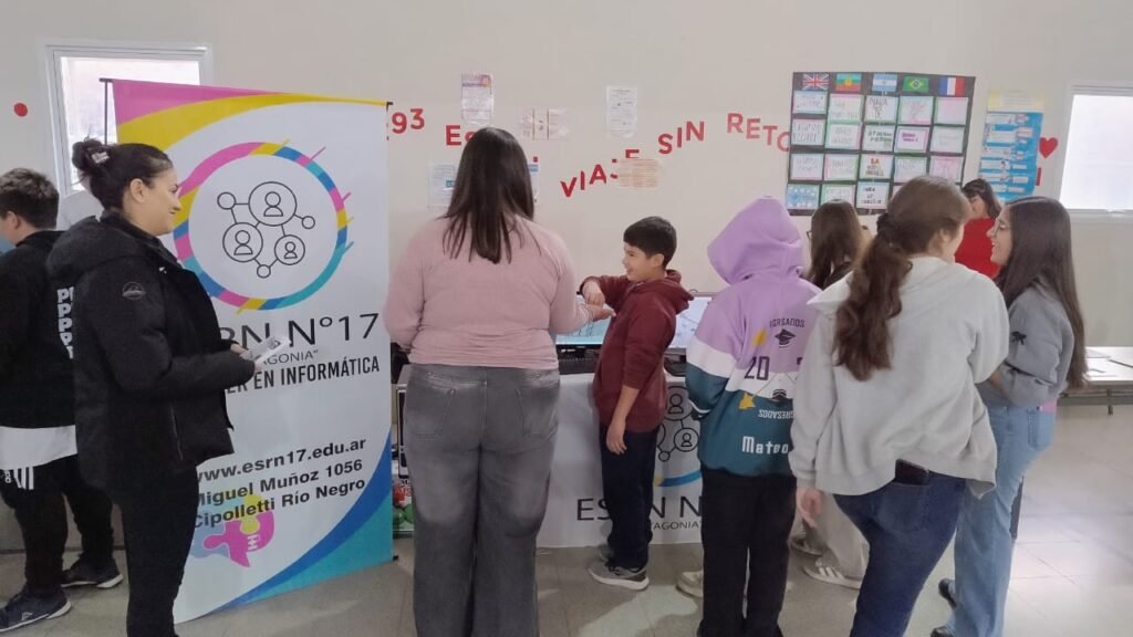En el stand de la ESRN 17 se encuentran exponiendo estudiantes de 4° y 5° año de ambos turnos, acompañados por los docentes del área de Informática Rodrigo Ramos, Nicolás López e Iván Sepúlveda, referente TIC de la institución. Allí comparten sus experiencias y muestran distintas producciones realizadas en el marco de la formación en Informática, acercando a los futuros ingresantes la propuesta educativa de nuestra escuela.